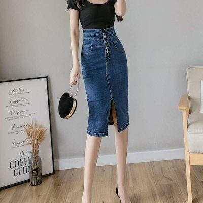 デニムスカート レディース タイト ストレッチ ロング 膝丈 スリット ハイウエスト 韓国ファッション おしゃれ 20代 30代 40代 50代
