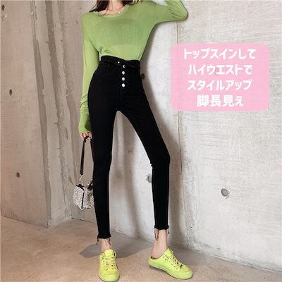 ハイウエスト ストレッチ スキニーパンツ レディース 韓国ファッション ジーンズ デニムパンツ Gパン ズボン 20代 30代 40代 50代