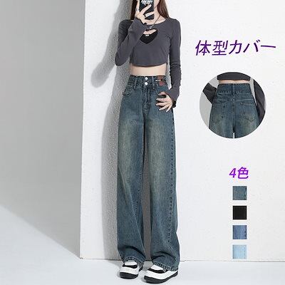 【2025春新作 ハイウエスト デニムパンツ テーパードパンツ 脚長効果 ワイドジーンズ ジーパン リラックスパンツ 韓国ファッション レディース ストレッチ 着痩せ ボトムス カ