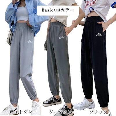 【1つ買うと10個無料】パンツ レディース 接触冷感 ひんやり 涼しい ジャージ 体型カバー ハイウエスト 股上深め 薄手 ゴム ハイウエスト 体型カバー ボトムス ストレッチ ひんやりタッチ 快適