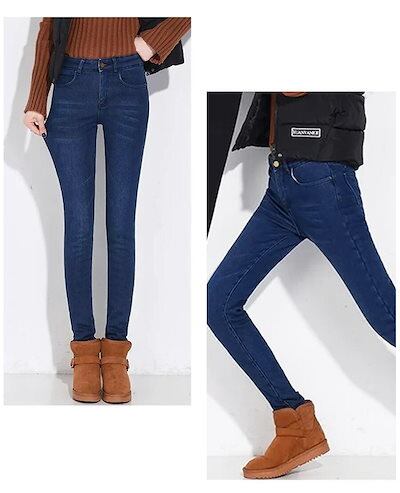 2点購入で600/オフ!極暖 裏ボア デニム パンツ スキニーパンツ タイトパンツ ストレッチ 脚長 あったかい 防風 防寒 レディース ボトムス 裏起毛 スリムフィット ズボン ロング