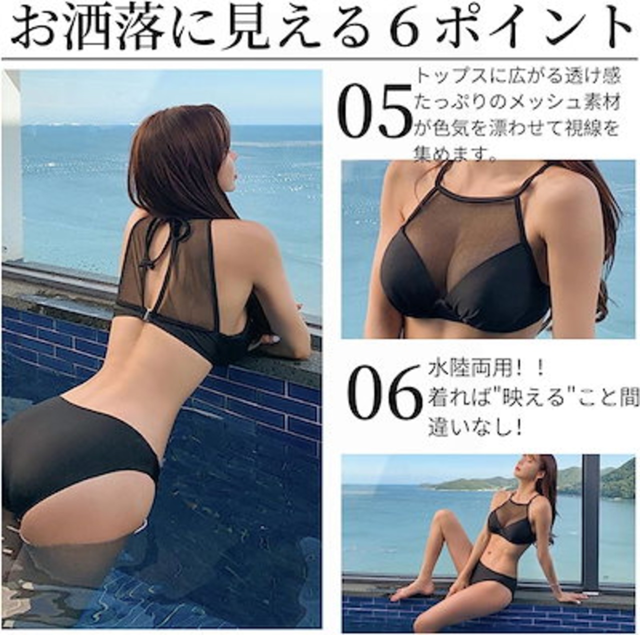 レディース 水着 ビキニ 2点セット シースルー セクシー水着 女性水着 セパレーツ 透け感 上下セット タンキニ スイムドレス ビーチウェア ブラック水着 単色水着 ック ワイヤー入り メッシ