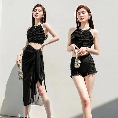 水着レディース 体型カバー 水着 ワンピース型 セパレート 肩出し 小胸バンドゥ 水着3点セット フリル 韓国風 20代 30代 40代 大きいサイズ 可愛い ウェア 温泉30%までに制限
