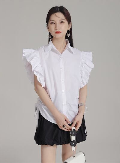 【J.Fashion】 フリル ブラウス 側巾着 おしゃれ 着痩せ レディース 夏 ブラウス 関連商品は店で購入可能 福袋 T