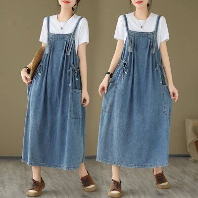 キャミワンピースサロペットデニム サロペット ワイドパンツ カジュアル ワンピース ゆったり オーバーオール デニム 無地 ズボン 薄手 ロング ノースリーブ 福袋 T