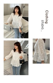 【ぽちゃまに】 春秋 ブラウス 刺繍 長袖 大きいサイズ 体型カバー チュニック 可愛い レディース ブラウス メガ割 T