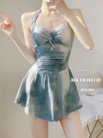 高級感ブルーに染めたギャルで痩せて見える韓国 ラッシュガード 可愛い ワンピース レディース ビキニ 2025夏 ワンピース 温泉 水着 体型カバー 修学旅行 水着