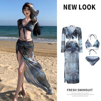 水着 2025新作 韓国ファッション水着 レディース 体型カバー長袖 ラッシュガード4点セット 水着セット 日焼け対策 大きいサイズ ショートパンツセットアップ