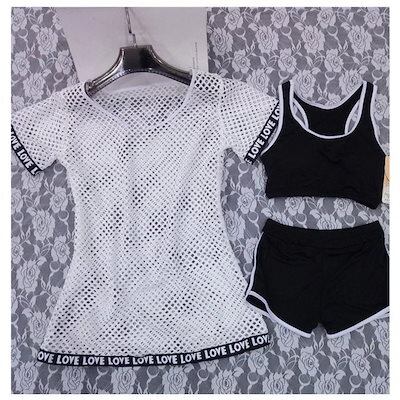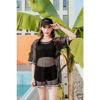 水着レディース 体型カバー ビキニ フィットネス ショートパンツ 水着3点セット セパレート チェー
