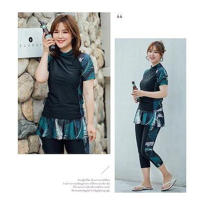 水着 レディース 半袖 フィットネス 水着 セパレート 水着 ぽっちゃり 大きいサイズ 3点セット スカート付 き競技競泳 体型カバー 海水浴 温泉 大人 ママ水着