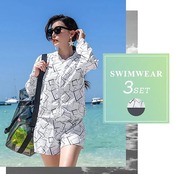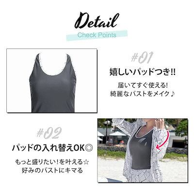 60代 ジップアップ フード 40代 レディース 体型カバー ラッシュガード ママ 3点セット 50代 白 タンキニ水着 長袖 セパレート