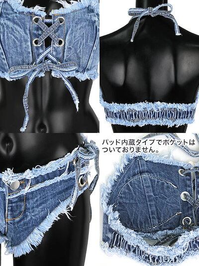 水着 デニム ホルターネック ビキニ セット ビキニ水着 ブルー セクシー レディースビキニ 激安 ハーフバックショーツ ジーンズ ハイレグ タイサイド 体型カバー 可愛い レディース 高校生 レディ