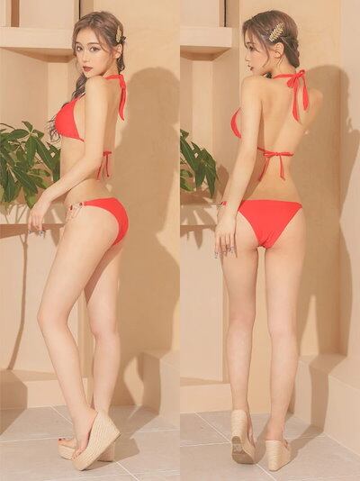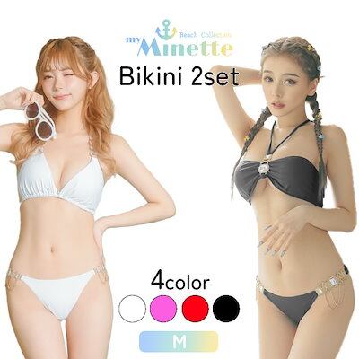 水着 三角 ビキニ セット ビキニ水着 セクシー ビジュー チェーン ホルターネック ブラック ホワイト ピンク レッド レディースビキニ 可愛い 激安 パッド 盛れる 体型カバー 可愛い レディース