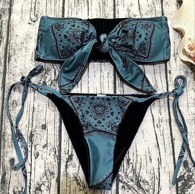 水着 ビキニ スイムウェア レディース パッドあり アンダーワイヤーなし セパレート リボン セット 上下セット 大人可愛い カジュアル 華やか 大人っぽい おしゃれ お洒落 主役級 存在感 個性的