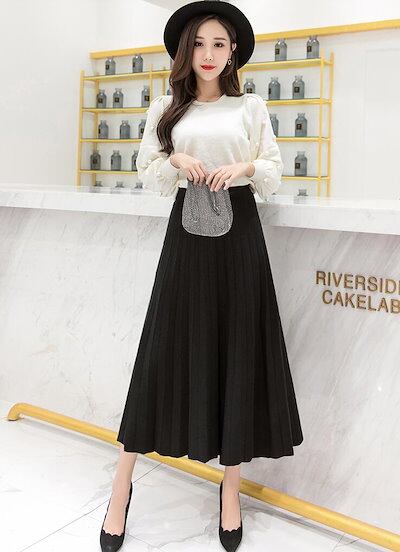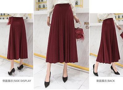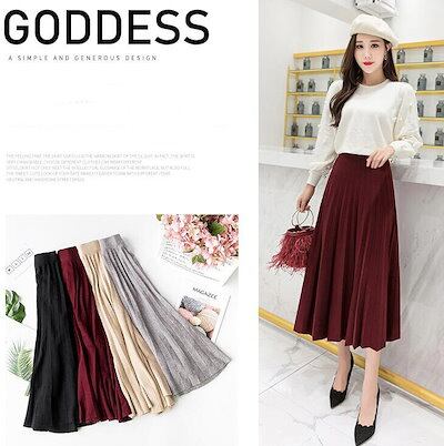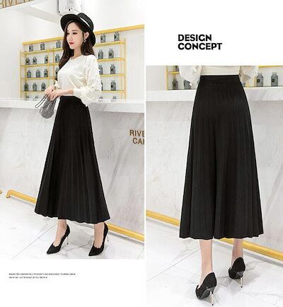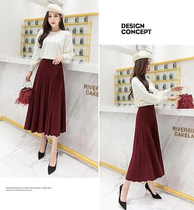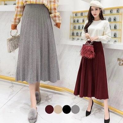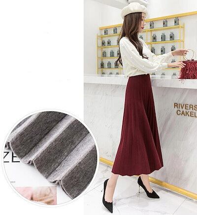 プリーツスカート プリーツ ニット ニットスカート フリル フリルスカート マキシスカート ロングスカート レディーススカート トレンド 美脚 ウエストゴム 体型カバー デート 女子会 秋冬