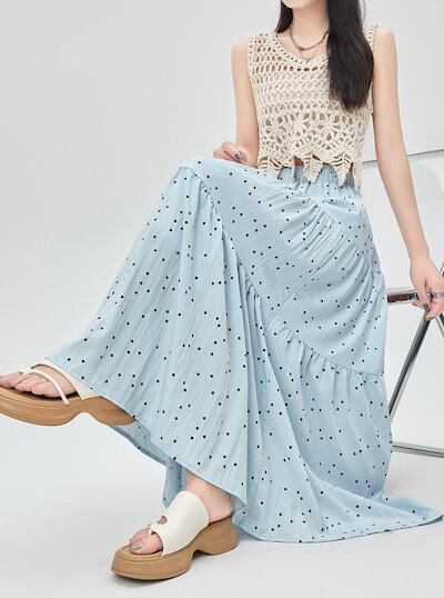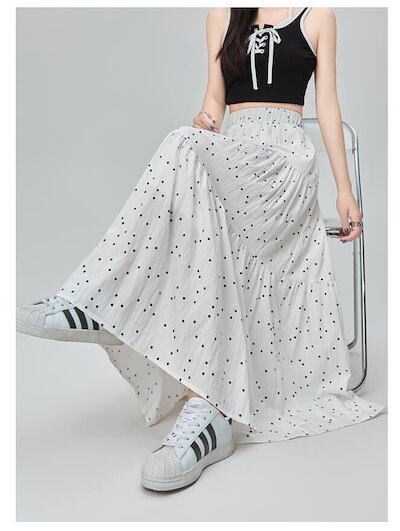 ギャザースカート シフォン スカート フリル ドット 水玉 ロングスカート aライン ハイウエスト ウエストゴム ロング丈 ミディアム ふんわり レディース 無地 大きサイズ 春 夏 S M L 2L