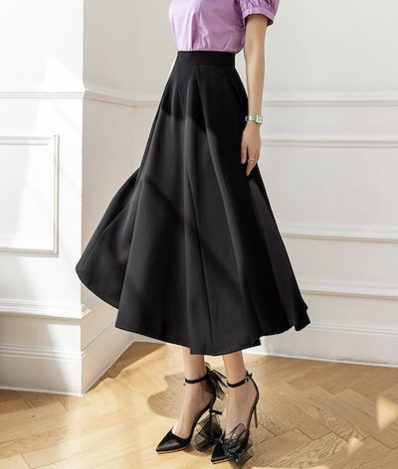 スカート フレアスカート フリル ロング ミモレ丈 ハイウエスト レディース Aライン 大きいサイズ 膝下 美脚 細見え カジュアル 春夏秋 S M L 2L