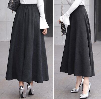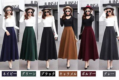 スカート フレアスカート フリルスカート ロング ミモレ丈 ハイウエスト レディース aライン 大きいサイズ 膝下 ウエストゴム 細見え カジュアル 春秋冬 S M L 2L 3L