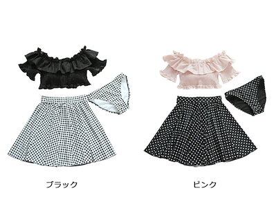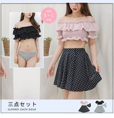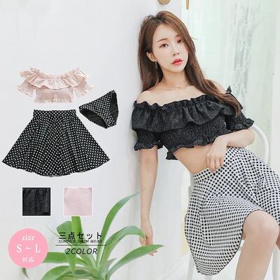 水玉 ドット ギンガムチェック 水着 セパレート 体型カバー 露出控えめ スカート 水着 レディース ビキニショーツ オフショルダー 肩出し へそ出し フリル 水陸両用 小胸 盛れる エレガント