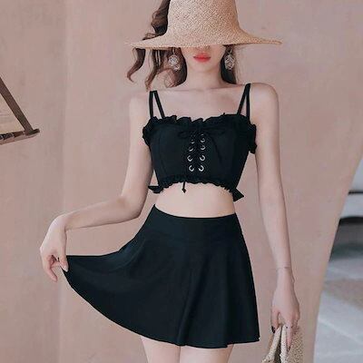 【急速出荷!】季節レディース 水着 ツーピース フレア フリル 編み上げ 胸リボン 腰リボン Aライン スカート パンツタイプ 温泉 海 プール スイミング ビーチ リゾート マリン 海水浴 夏休み