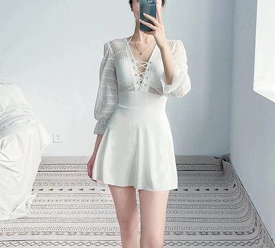 水着ワンピース 体型カバー カップ付きインナー ビキニ人気 ファッション ニ水着 レディース 長袖 レディース 大きいサイズ 高校生 フィットネス 競泳 ビキニ タンキニ 韓国ファッシ