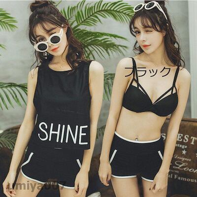 水着 体型カバー タンキニ ビキニ 3点セット水着 レディース 韓国風 ファッション 水着 可愛い スイムウェア セパレート 紫外線カット 水泳 女性用