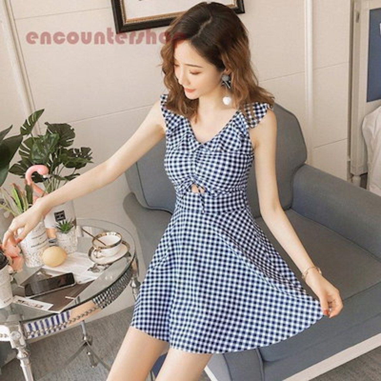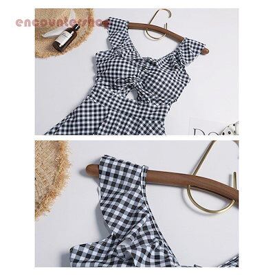 水着 レディース 体型カバー 水着ワンピース型 サロペット水着 半袖 チェック柄Vネック 小胸バンドゥ 40代 オシャレ韓国風 可愛い スイムウェア ママ