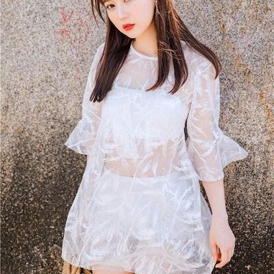 水着 三点セット ワンピース レディース スプリット フラットアングル 薄手 スチューデント スパ スイミング レース 体型カバー 韓国