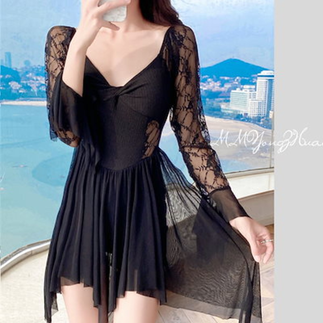 2025新作水着 ワンピース 保守的 ロングスリーブ レース セクシー 水着 水着 レディース 水着 体型カバー 水着 韓国