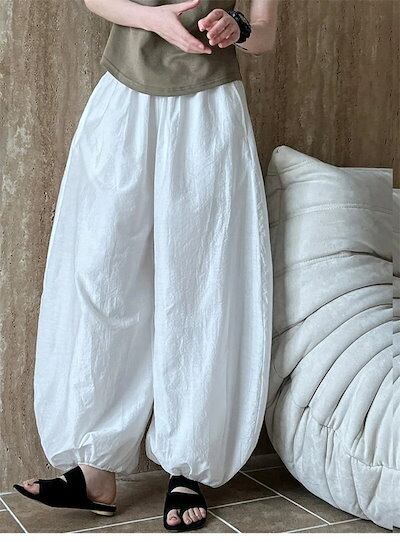 【激安販売】バルーンパンツ 夏 レディース パンツ 綿麻風 ワイドパンツ サーカスパンツ 薄手 柔らか ガウチョ ボトムス ウエストゴム バギーパンツ 大きいサイズ エスニック ナチュラル ゆったり