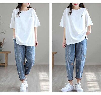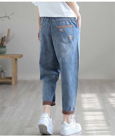 即納可能デニムパンツ 春 レディース デニム パンツ ロングパンツ テーパードパンツ ワイド ボトムス チノパン ジーパン ロング ロールアップ 森ガール 夏 秋 無地 ズボン ウエストゴム 大きいサ