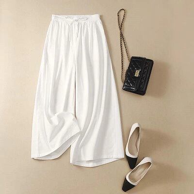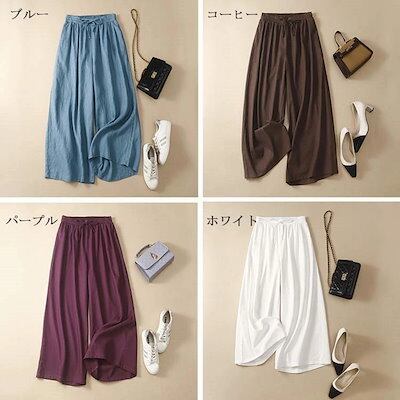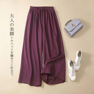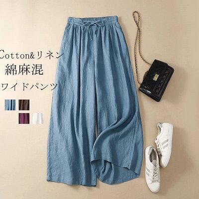 【NEWカラー追加】ワイドパンツ 綿麻 リネンパンツ 麻 ガウチョパンツ スカーチョ ロングパンツ ウエストタック ボトムス レディース ロング パンツ リボン リネン ズボン 大きいサイズ ロングパ