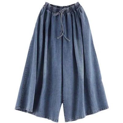 新製品 デニムパンツ レディース ワイドパンツ ジーパン パンツ デニム ワイドパンツ ワイド ロング スカンツ ワイドルーズ 大きいサイズ 大人 楽ちん ゆったり ウエストゴム オーバーサイズ カジ