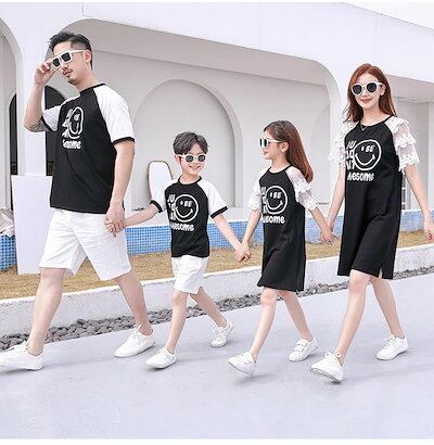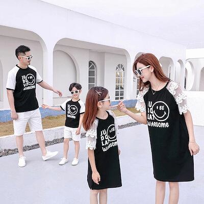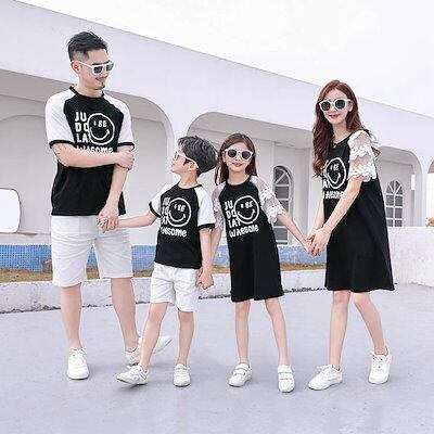 ペアtシャツ 家族おそろい服 親子ペア tワンピース ペアルック 半袖tシャツ シャツ メンズ 半ズボン 親子お揃い リゾート メンズtシャツ レディースワンピース メンズトップス キッ