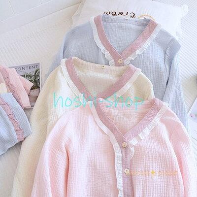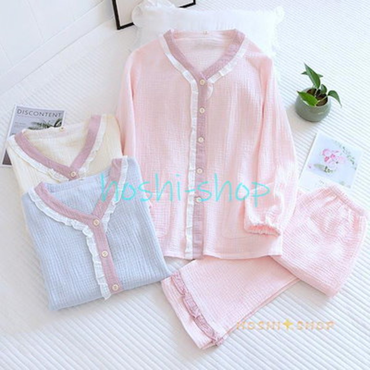 ウェア 楽ちんウェア パジャマ あったかウェア ウェア パジャマ レディース セットアップ 長袖 ガーゼ ガーゼパジャマ 長ズボン 前開き 上下セット パンツ 可愛い 福