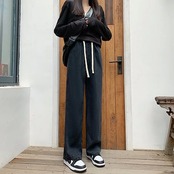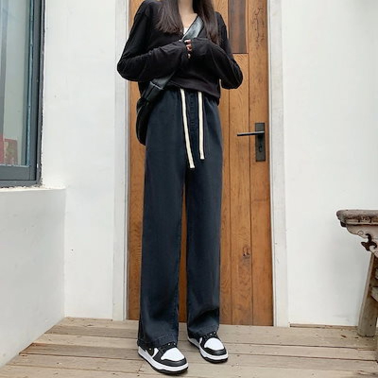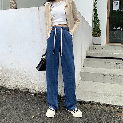 2023 春夏 新商品 垂順 ジーンズ ワイドパンツ レディース 着痩せ ハイウェ スト 伸縮性のあるウエスト ストレートパンツ モップパンツ