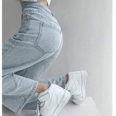 即納 ハイウェスト ドレープ感 カーディガン ゆったり ストレート モップパンツ モップパンツ デニムパンツ レディース服 ロングパンツ 美脚 長ズボン