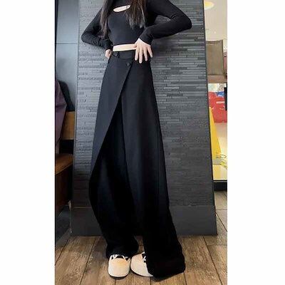 2024人気新作春服レディース ハイウエストワイドパンツ韓国ファッションロングパンツモップパンツ脚長効果