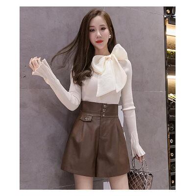 ショートパンツ レディース 秋冬 ボトムス レザーパンツ ワイドパンツ ガウチョパンツ 短パン 美脚 大きいサイズ おしゃれ 着痩せ 上品 新品