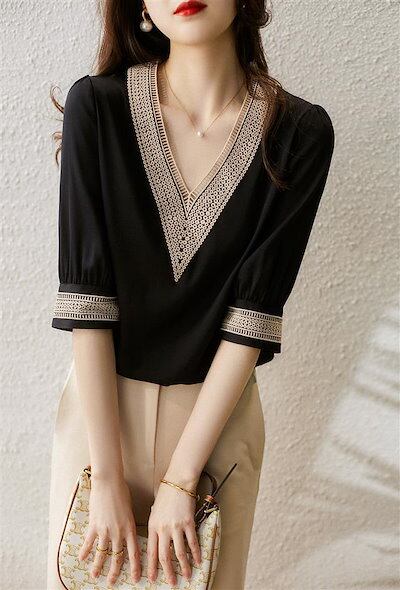 ブラウス 夏 シフォンブラウス 七分袖 ブラウス レディース 韓国ファッション 百掛け tシャツ 半袖 弾力 快適 着痩せ 半袖 トップス Vネック シャツ母の日