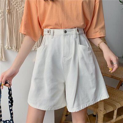 春夏新作 デニム ハーフパンツ レディース ハイウエスト カジュアル ワイドレッグ ショートパンツ 韓国 ゆったり スリム見え ジーパン ホットパンツ