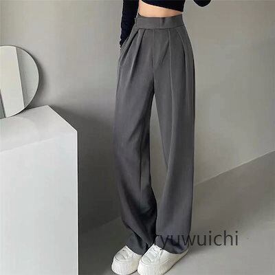 ワイドパンツ レディース ガウチョパンツ ロング スラックス ストレートパンツ ハイウエスト マジックテープ ゆったり スリム 着痩 美脚 春夏 通勤