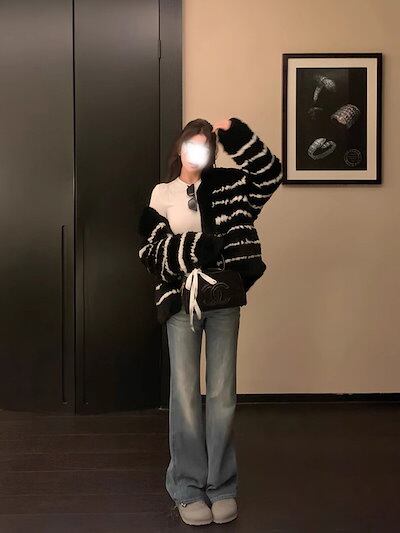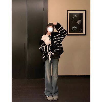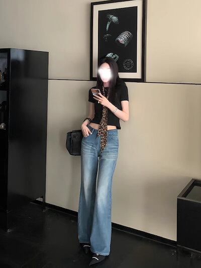 欧陽ウォッシュ加工のダメージ加工フレアジーンズレディース冬物アメリカンレトロストレートパンツスリムフィットパンツ