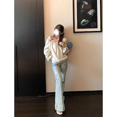 Ququ Ouyang フレアジーンズ レディース 春 ハイウエスト スリム フレアパンツ スリムストレート ズボン レトロパンツ