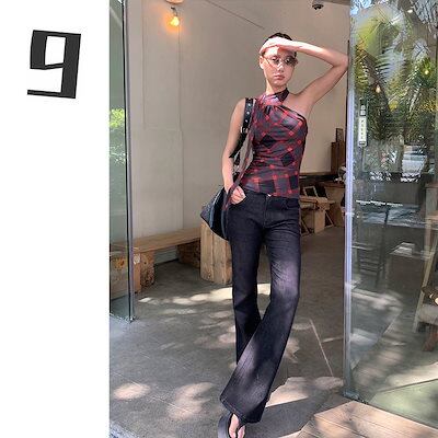 [9hour] アメリカンスタイル スリムフレアジーンズ レディース 2025 春 バックウエスト スプライシング カジュアルパンツ cy1206