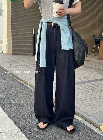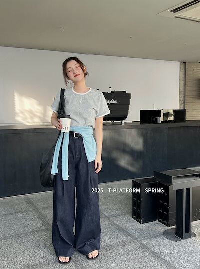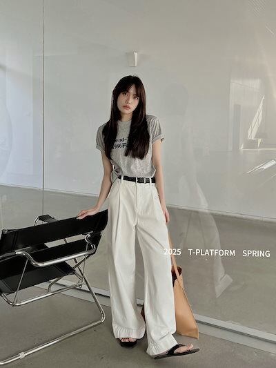 T-PLATFORM ストレート カジュアル パンツ レディース ゆったり 万能 ハイウエスト スリム モッピングパンツ 15189