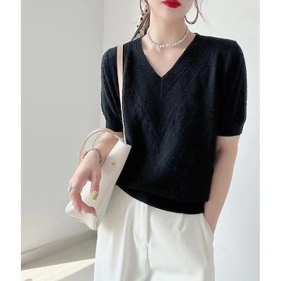【急速出荷!】ティーシャツ サマーニット ニットソー 無地 春 夏 新作セール トップス Tシャツ 体型カバー 半袖 カットソー レディース
