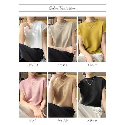 【急速出荷!】サマーニット レディース ニットトップス 春 黒 白 半袖 ニット トップス 可愛い 上品 オフィス ボトルネック フレンチスリーブ 無地 体型カバー