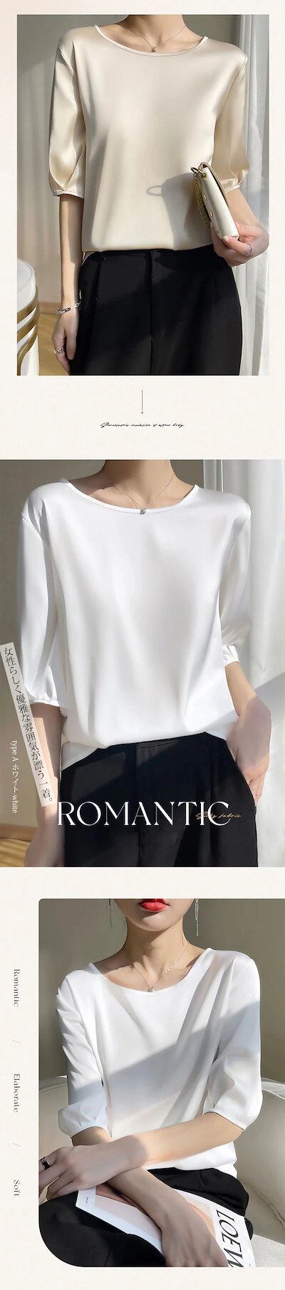 サテン ブラウス レディース Tシャツ サテン シャツ 579分袖 トップス シャツ 無地 シ3600