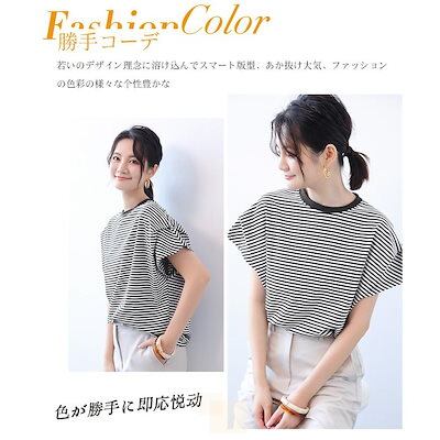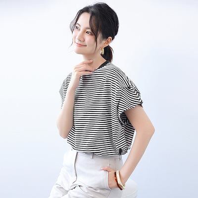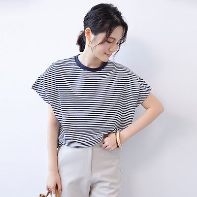 tシャツ レデイーズ カットソー 半袖 春夏 無地 ストライプ レディースTシャツ バットスリーブ ワイド袖 シンプル ベーシック ゆったり かわいい おしゃれ 通勤